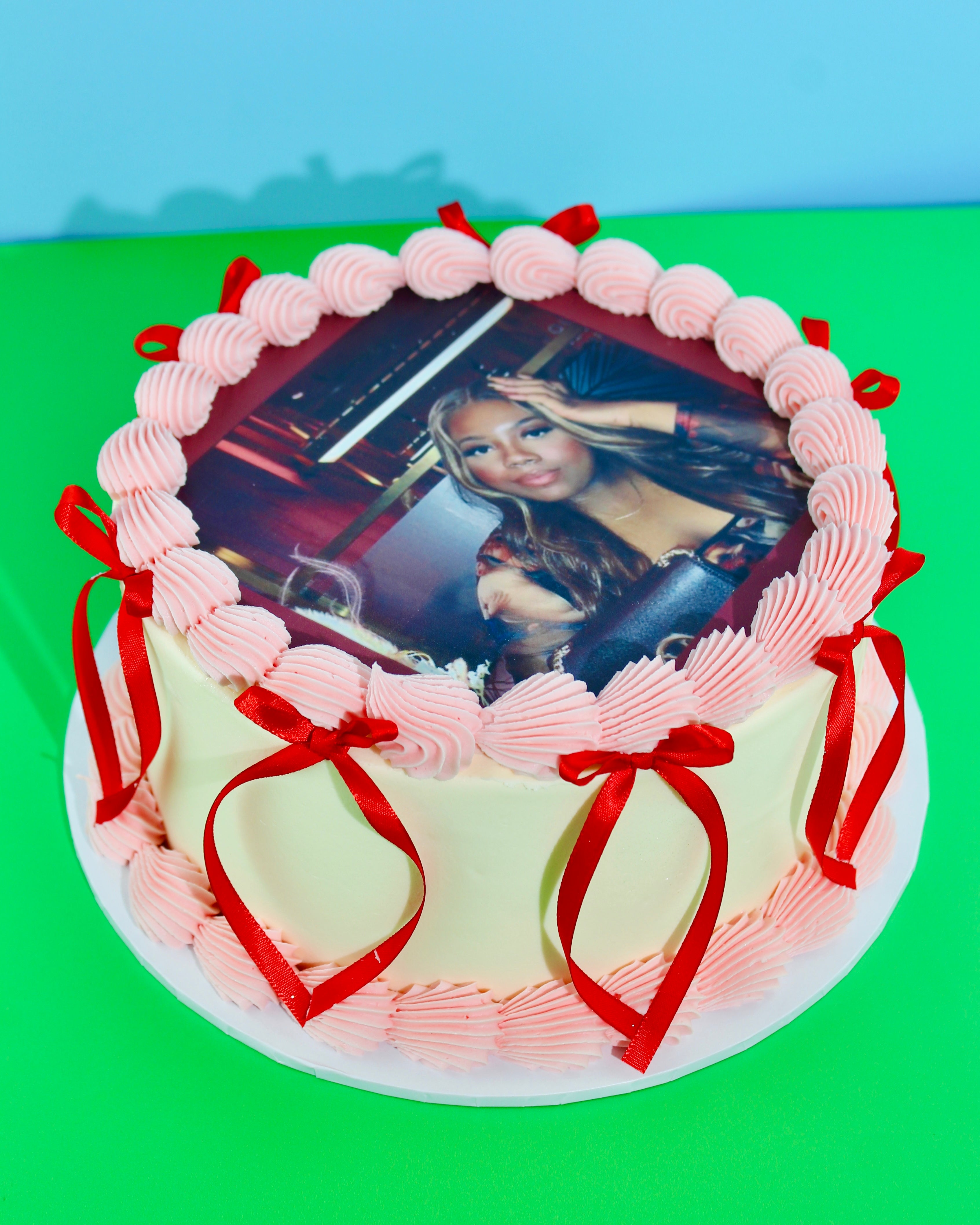 Customisable colours allow you to match your photo and create the perfect centrepiece. Each cake is freshly baked to order.